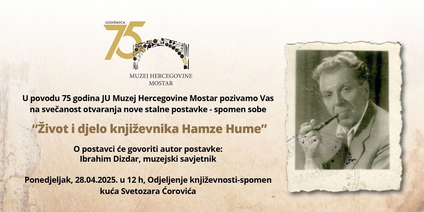 75 godina Muzeja Hercegovine Mostar: Otvaranje spomen sobe “Život i djelo književnika Hamze Hume”