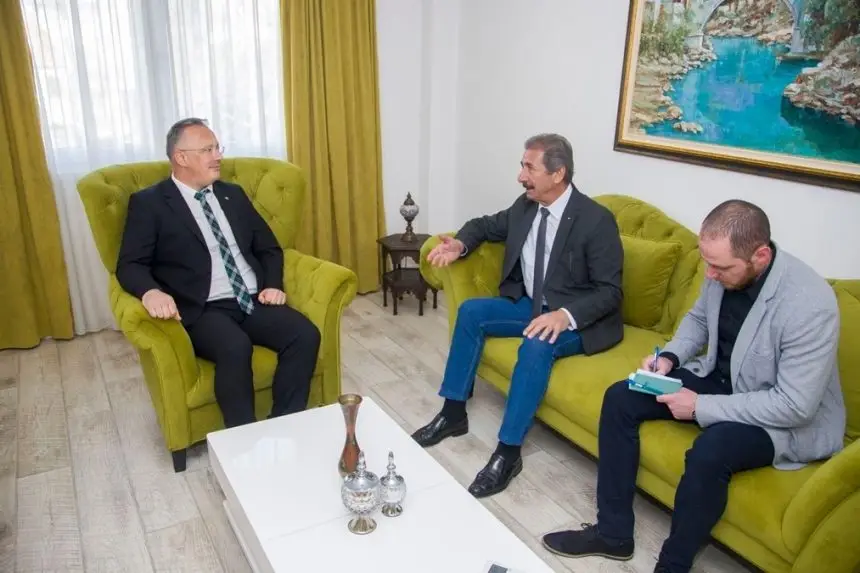 Ambasador Države Palestine u Bosni i Hercegovini Rezeq Namoura boravio je danas u Mostaru, gdje je posjetio zastupnika u Parlamentu Federacije BiH Sanela Kajana. Posjeta je upriličena uoči završetka dugogodišnjeg i uspješnog diplomatskog mandata ambasadora Namoure u Bosni i Hercegovini.