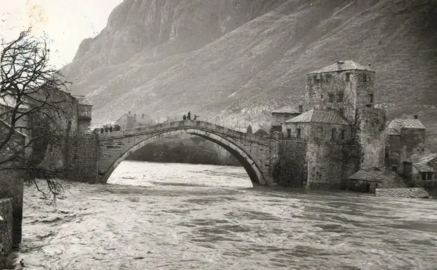 Na snimcima koje je objavio Arhiv Hercegovačko-neretvanskog kantona vidi se Neretva koja je dosegla nevjerovatno visok nivo, pri tome “sakrivši” čuveni Stari most, kao i dijelove starog grada koji se nalaze tik uz rijeku.
