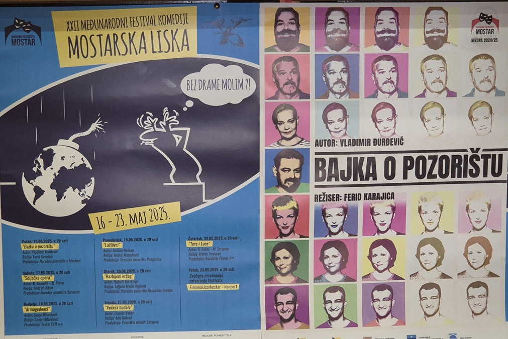 Premijerno izvođenje predstave “Bajka o pozorištu”, autora Vladimira Đurđevića, u režiji Ferida Karajice, nastale u produkciji Narodnog pozorišta u Mostaru (NPM), svečano će otvoriti 22. izdanje Međunarodnog festivala komedije “Mostarska liska” u petak, 16.maja, u Narodnom pozorištu u Mostaru.