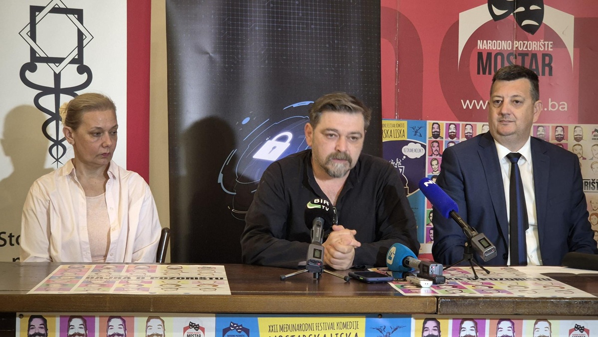 “Danas smo se ovdje trebali okupiti u duhu smijeha, komedije, slavlja, života i svega onoga što Mostarska liska donosi sa sobom, međutim, danas je naše pozorište utihnulo jer nas je sinoć napustio naš kolega, dugogodišnji član ansambla Goran Lozo. Njegov specifičan način humora, ljudska toplota ostavila je neizbrisiv trag na sceni ovog pozorišta i zato imamo obavezu, s tugom naravno, nastaviti dalje i neka ovaj festival bude i posveta jednom životu koji nas je bezbroj puta podsjetio što je to humor i što je to pozorište”, kazao je direktor Narodnog pozorišta Emir Spahić na konferenciji za novinare.