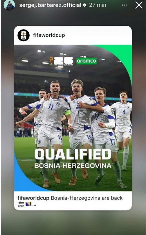 “Dream Big, dream BiH”, napisao je Barbarez, uz fotografiju reprezentativaca BiH na stranici FIFA-e.