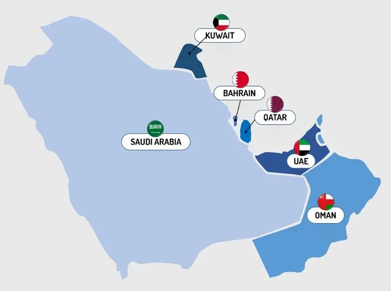 GCC čine Saudijska Arabija, Katar, Ujedinjeni Arapski Emirati, Kuvajt, Bahrein i Oman.