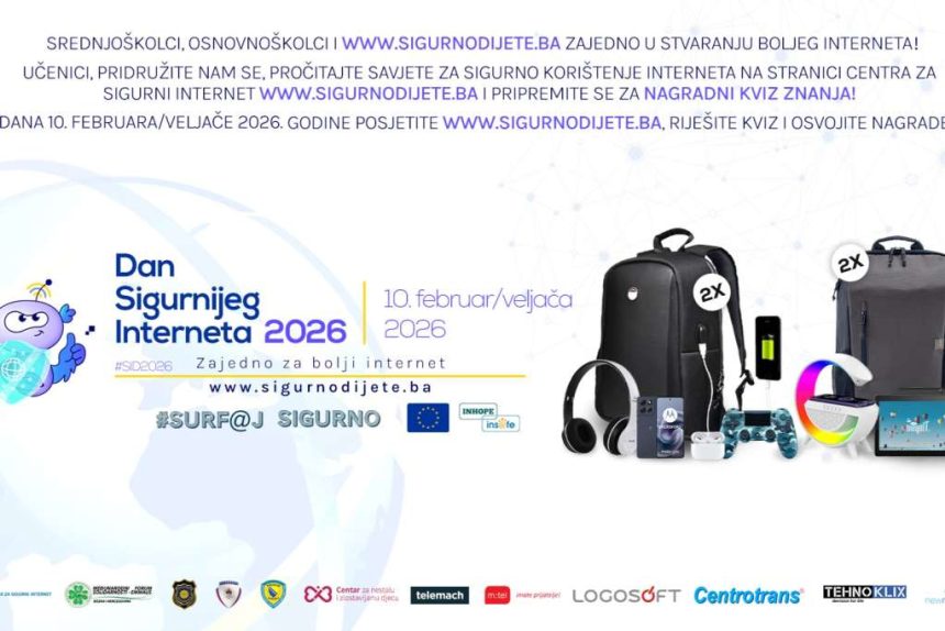 U okviru obilježavanja Dana sigurnijeg interneta 2026, Centar za sigurni internet organizuje online edukativni kviz za djecu i mlade širom Bosne i Hercegovine, koji će biti dostupan danas   od 9.00 do 19.00 sati.