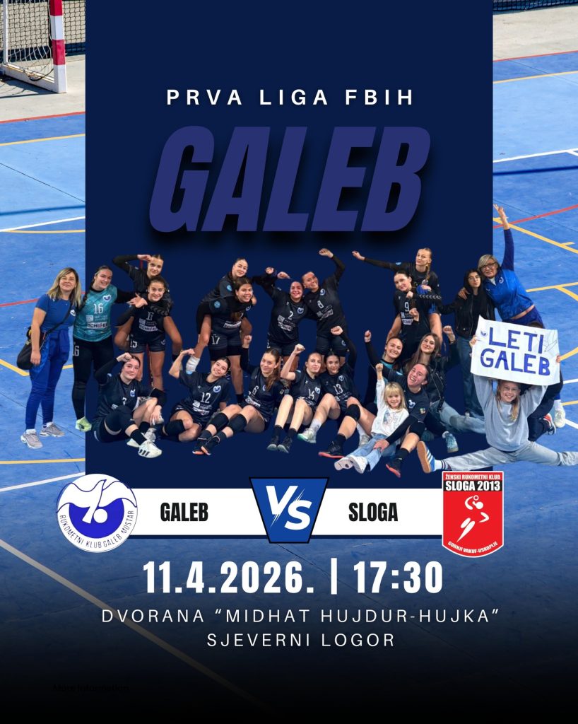 Rukometašice RK Galeb Mostar ugostit će ekipu ŽRK Sloga 2013 iz Gornjeg Vakufa/Uskoplja u derbiju koji bi mogao odlučiti borbu za sami vrh prvenstvene tabele.