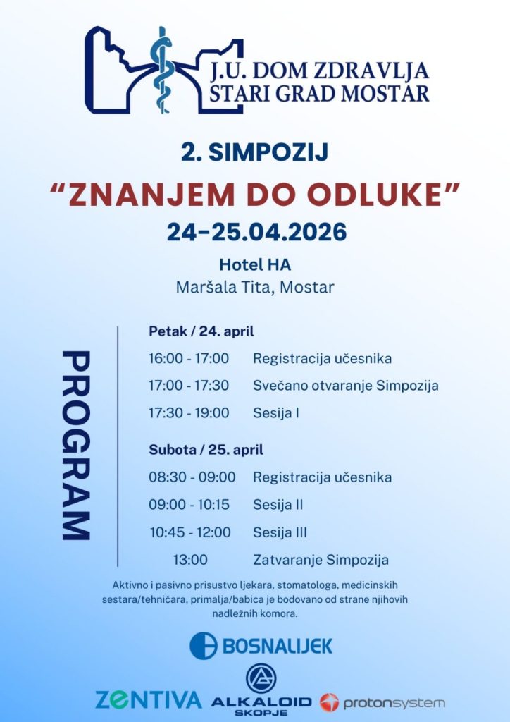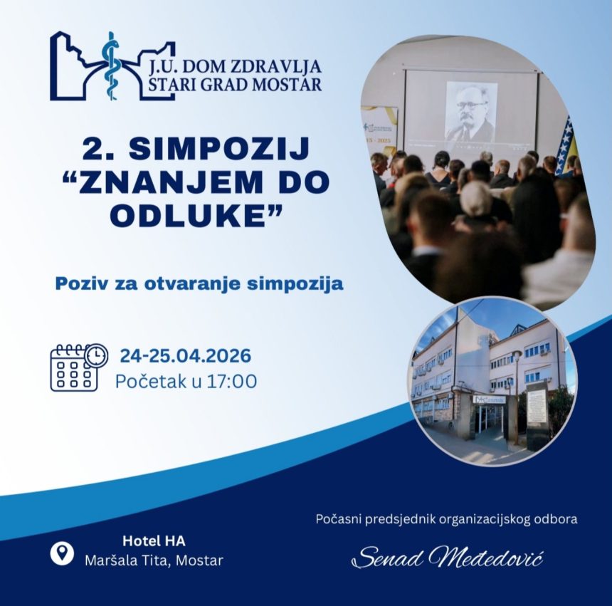 Dom zdravlja Stari grad Mostar 24. i 25. aprila organizuje II Simpozij „Znanjem do odluke“, jedan od najznačajnijih edukativnih skupova u oblasti zdravstva.