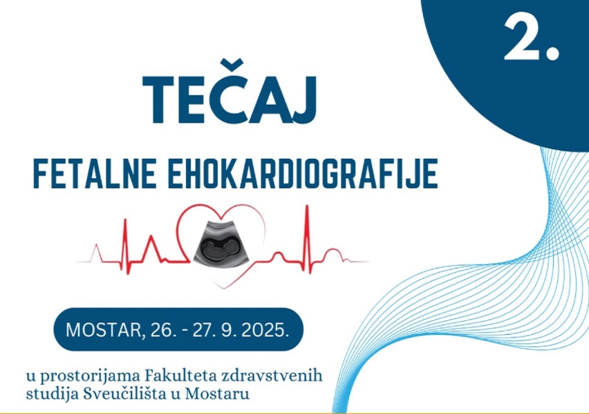 Dvodnevni drugi kurs fetalne ehokardiografije, u organizaciji Klinike za dječje bolesti i Klinike za ginekologiju i porodništvo Sveučilišne kliničke bolnice Mostar, uz suorganizaciju Fakulteta zdravstvenih studija Sveučilišta u Mostaru, Udruženja za perinatalnu medicinu u BiH i Liječničke/Ljekarske komore HNK, održat će se 26. i 27. septembra 2025. godine na Fakultetu zdravstvenih studija Sveučilišta u Mostaru.