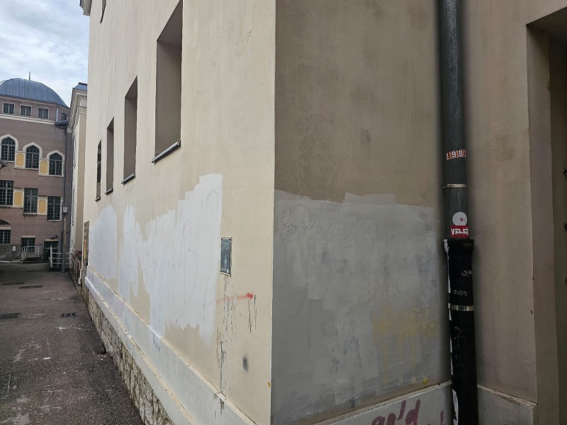 Po nalogu načelnice Odjela za privredu, komunalne i inspekcijske poslove Grada Mostara Amire Trbonja, radnici Javnog preduzeća (JP) Kimunalno danas su prefarbali uvredljive grafite na zgradi Muzičke škole na Musali i na Partizanskom groblju.