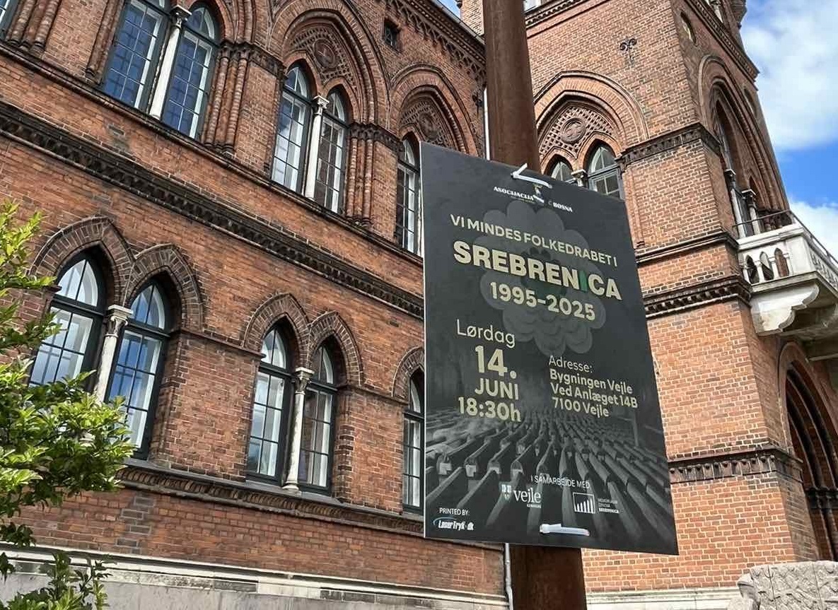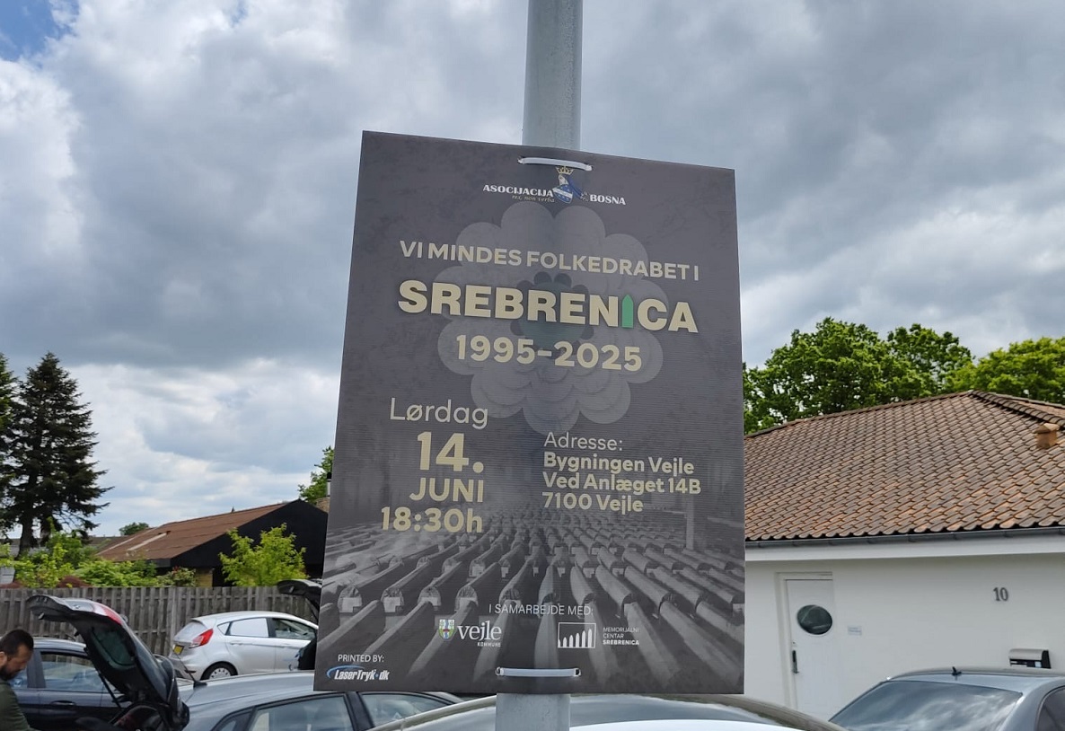 U nedjelju, je širom grada Vejlea u Danskoj postavljeno 75 bilborda s porukom sjećanja na genocid u Srebrenici. Ovaj čin označava početak obilježavanja 30. godišnjice genocida u Srebrenici (1995–2025), u organizaciji udruženja Asocijacija Bosna iz Danske, uz zvanično partnerstvo Grada Vejlea (Vejle Kommune).