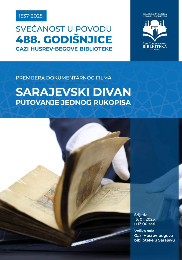 Godišnjica Gazi Husrev-begove biblioteke: Premijera dokumentarnog filma “Sarajevski Divan – Putovanje jednog rukopisa”