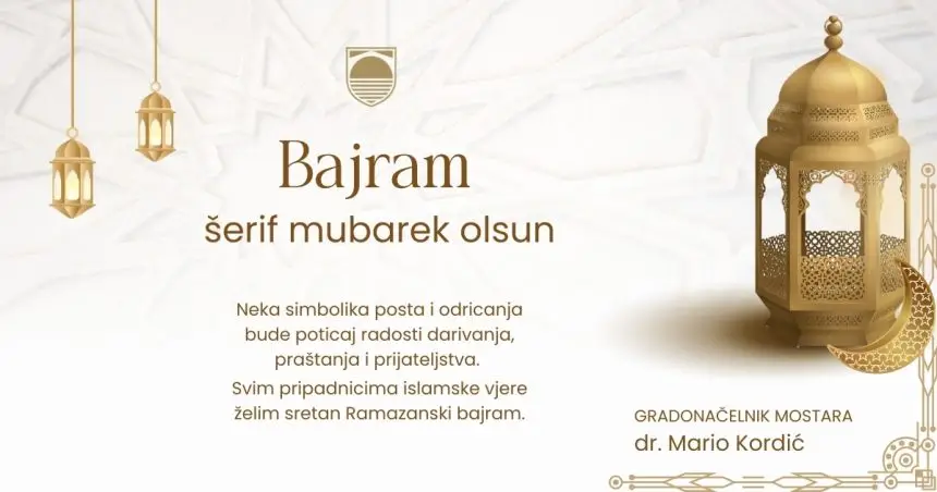 Gradonačelnik Mostara Mario Kordić uputio je čestitku pripadnicima islamske vjere povodom Ramazanskog bajrama.