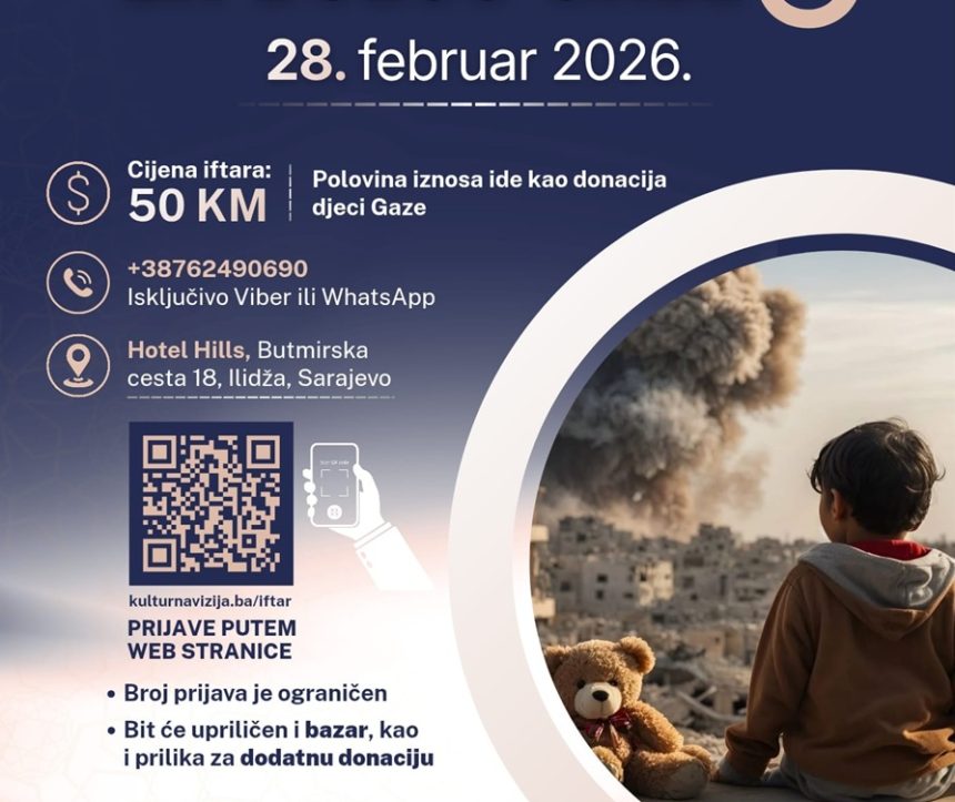 Treći po redu humanitarni iftar kojeg organizuju KulturnaVizija.ba Sarajevo i Udruženje Pomozi.ba održat će se 28. februara u Hotelu Hills Sarajevo.