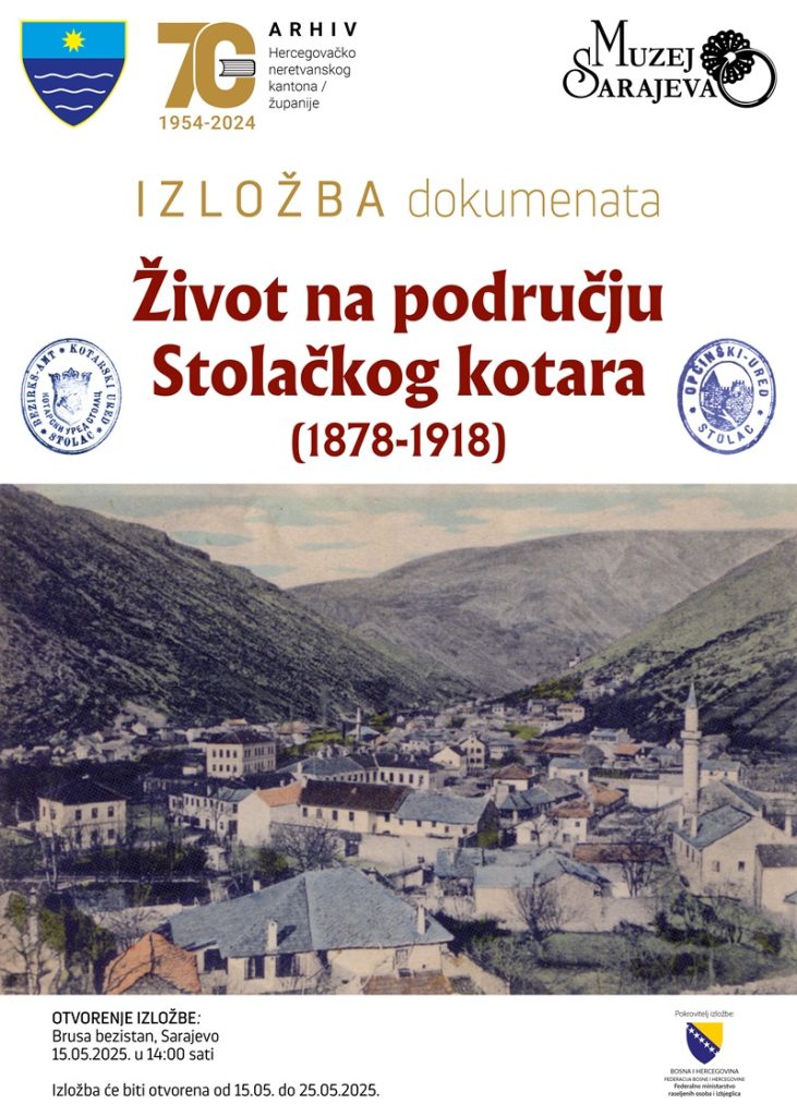 Arhiv Hercegovačko-neretvanskog kantona u saradnji sa Muzejom Sarajeva organizuje izložbu dokumenata pod nazivom “Život na području Stolačkog kotara ( 1878-1918 )”.