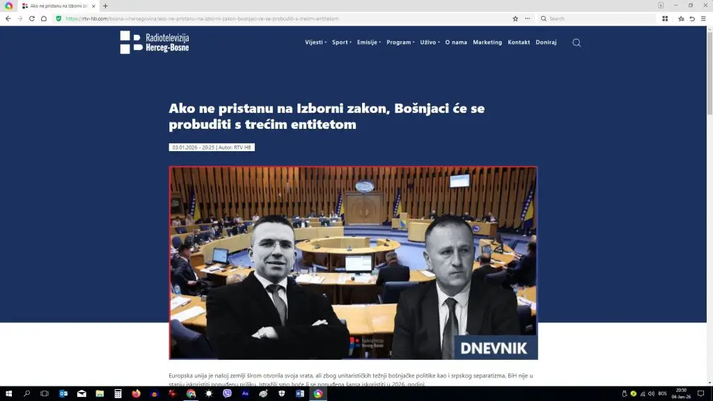 Ako ne pristanu na Izborni zakon, Bošnjaci će se probuditi s trećim entitetom (naslov na zvaničnoj web stranici RTVHB) https://rtv-hb.com/bosna-i-hercegovina/ako-ne-pristanu-na-izborni-zakon-bosnjaci-ce-se-probuditi-s-trecim-entitetom.
