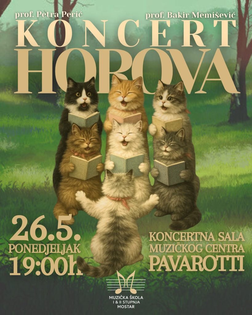 Koncert horova Muzičke škole Mostar, održat će sevečeras u Koncertnoj sali Muzičkog centra Pavarotti s početkom u 19:00 sati.