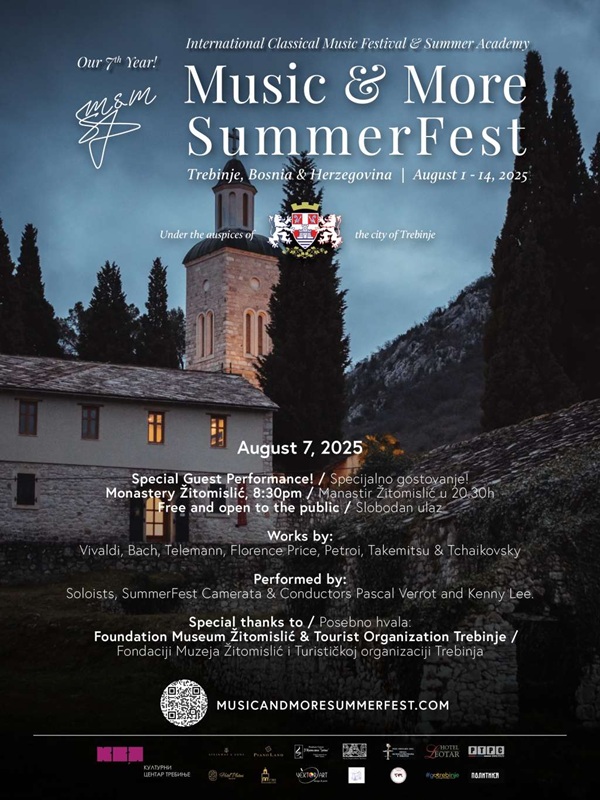 Koncert klasične muzike bit će održan u četvrtak, 7. avgusta u porti manastira Žitomislić, u 20.30 sati.