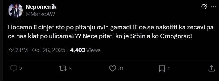 Stvari su, međutim, daleko složenije od toga. Linč je pripreman danima prije napada. Lideri vladajuće većine i njihovi saradnici su danima sistematično plašili javnost opasnošću od Turaka koji su „preplavili Crnu Goru“, prenose vijesti.ba.