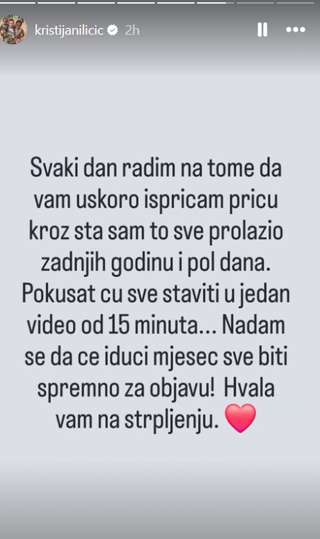Također, Iličić je dodao da s nestrpljenjem čeka ispričati svojim pratiteljima kroz šta je sve prošao posljednjih godinu i pol te da će video sa svojom ispovjesti podijeliti idući mjesec.