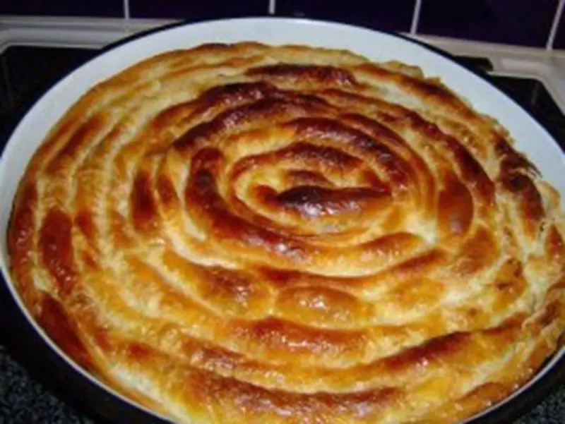 Peći na 220 stepeni oko 30 minuta. Pečenu pitu preliti sa 100 mililitara slane vode i zapeći još nekoliko minuta.