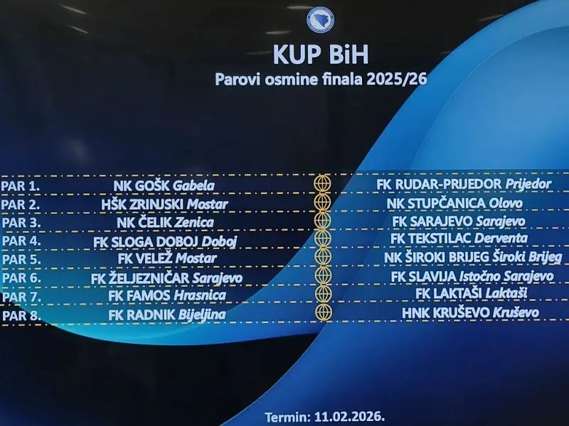 Kup Bosne i Hercegovine ulazi u samu završnicu. Danas su u Sarajevu žrijebani parovi osmine.