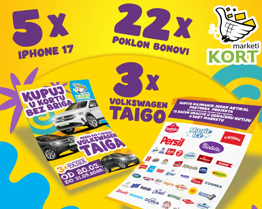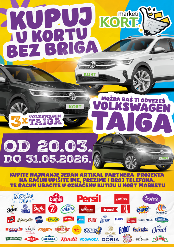 Počela je velika KORT nagradna igra pod nazivom “KUPUJ U KORTU BEZ BRIGA, MOŽDA BAŠ TI ODVEZEŠ VOLKSWAGEN TAIGA”
