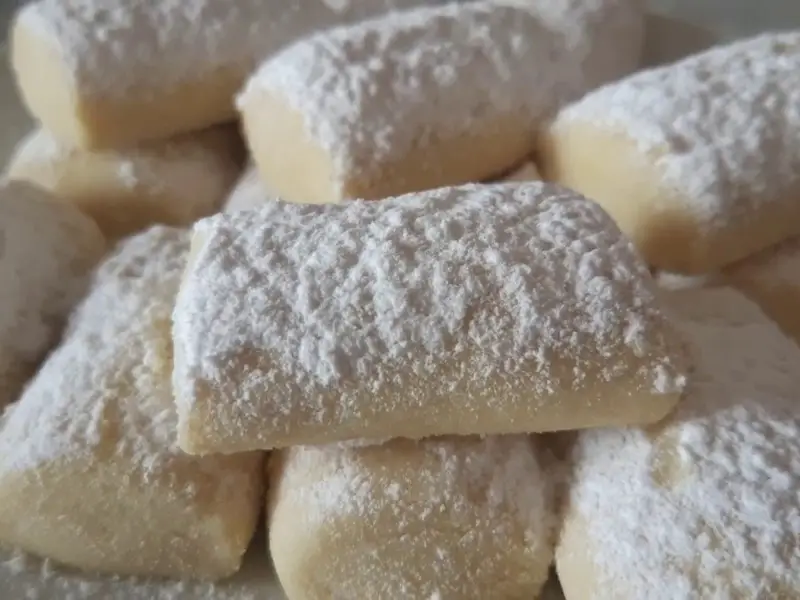 Svaki dio razvaljati prstima da bude malo deblje od prsta, pa sjeći u zeljene oblike i stavljati na suh pleh.