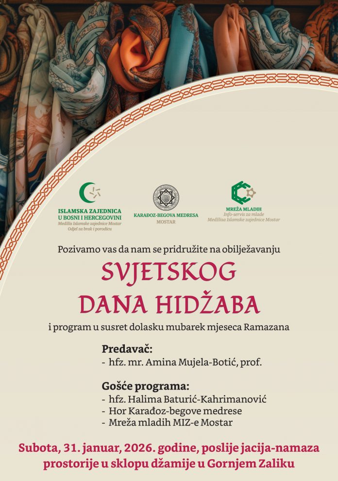 Medžlis Islamske zajednice (MIZ) Mostar organizuje obilježavanje Svjetskog dana hidžaba i prigodni program uoči mubarek mjeseca Ramazana, navedeno je u saopštenju MIZ-a Mostar.