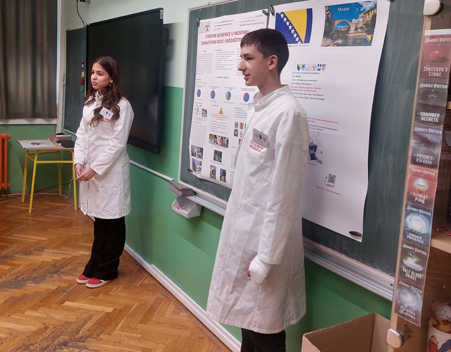 Učenici Amar Vele i Tajra Elezović pod mentorstvom nastavnice biologije mr.sc. Alme Čolak iz IV osnovne škole Mostar osvojili su 2. mjesto na Međunarodnoj smotri učeničkih istraživačkih projekata “Biosigurnost i biozaštita u osnovnim i srednjim školama” koja je održana u Osnovnoj školi “Vijenac” u Osijeku.