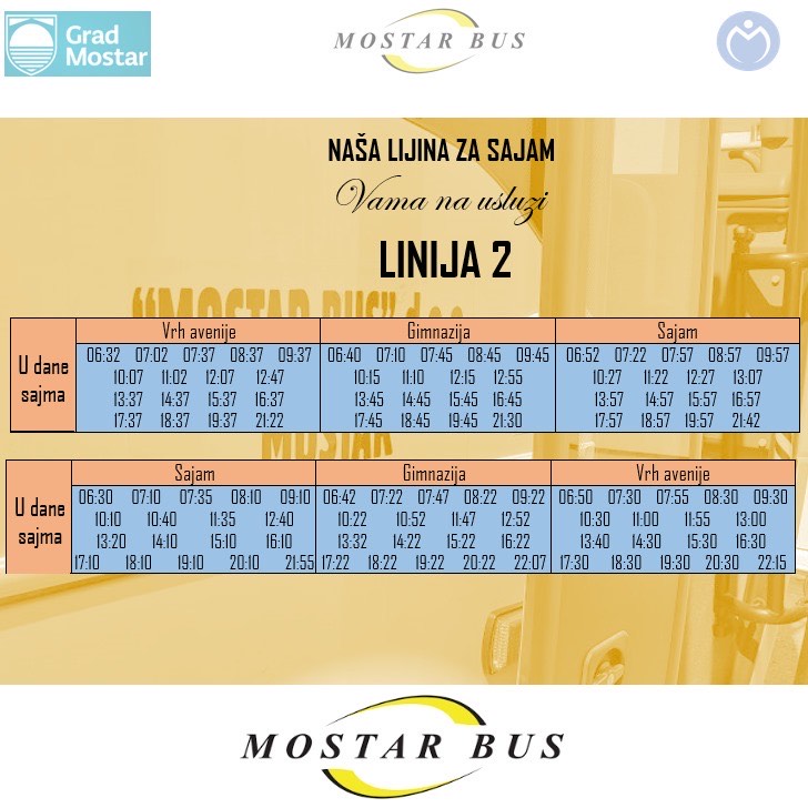Riječ je o prilagođenoj redovnoj liniji broj 2, koja će voziti svakih sat vremena, osiguravajući siguran, udoban i praktičan prijevoz za sve posjetioce i izlagače Sajma. Sajamska linija omogućit će jednostavan pristup svim ključnim lokacijama u gradu, uključujući i Sajamski prostor.