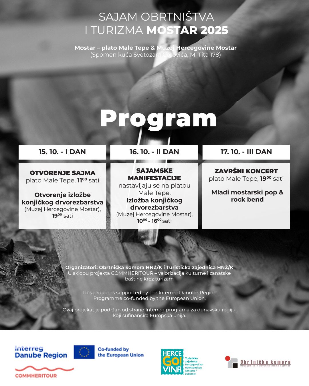 Projekt COMMHERITOUR je podržan od strane Interreg Programa za dunavsku regiju koji sufinancira Europska unija i s ovim događajem će se nastojati stvoriti temelji za budući redoviti godišnji sajam obrtništva i turizma u Mostaru, navodi se u saopćenju Turističke zajednice HNK.