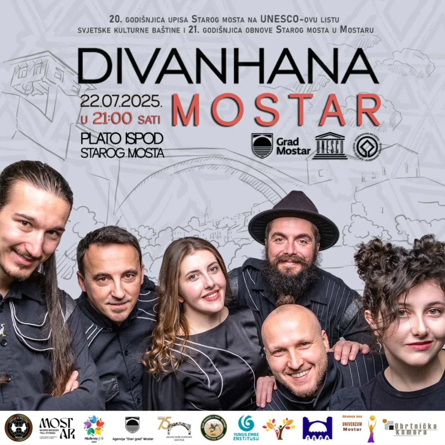 Na platou ispod Starog mosta, večeras u 21 sat, bit će upriličen koncert grupe “Divanhana”, kao centralni događaj manifestacije “Čuvari tradicije”, koja se održava u okviru “Mostarskog ljeta 2025”.