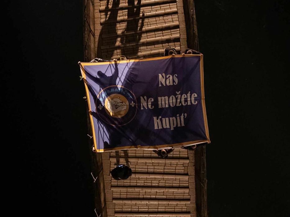 Na Starom mostu transparent “Nas ne možete kupiti”