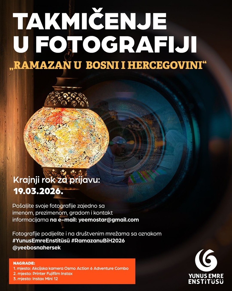 “Pošalji svoju fotografiju zajedno sa svojim imenom, prezimenom, gradom i kontakt informacijama na yeemostar@gmail.com i podijeli je na društvenim mrežama uz oznaku #YunusEmreEnstitüsü #RamazanuBiH2026 @yeebosnahersek!