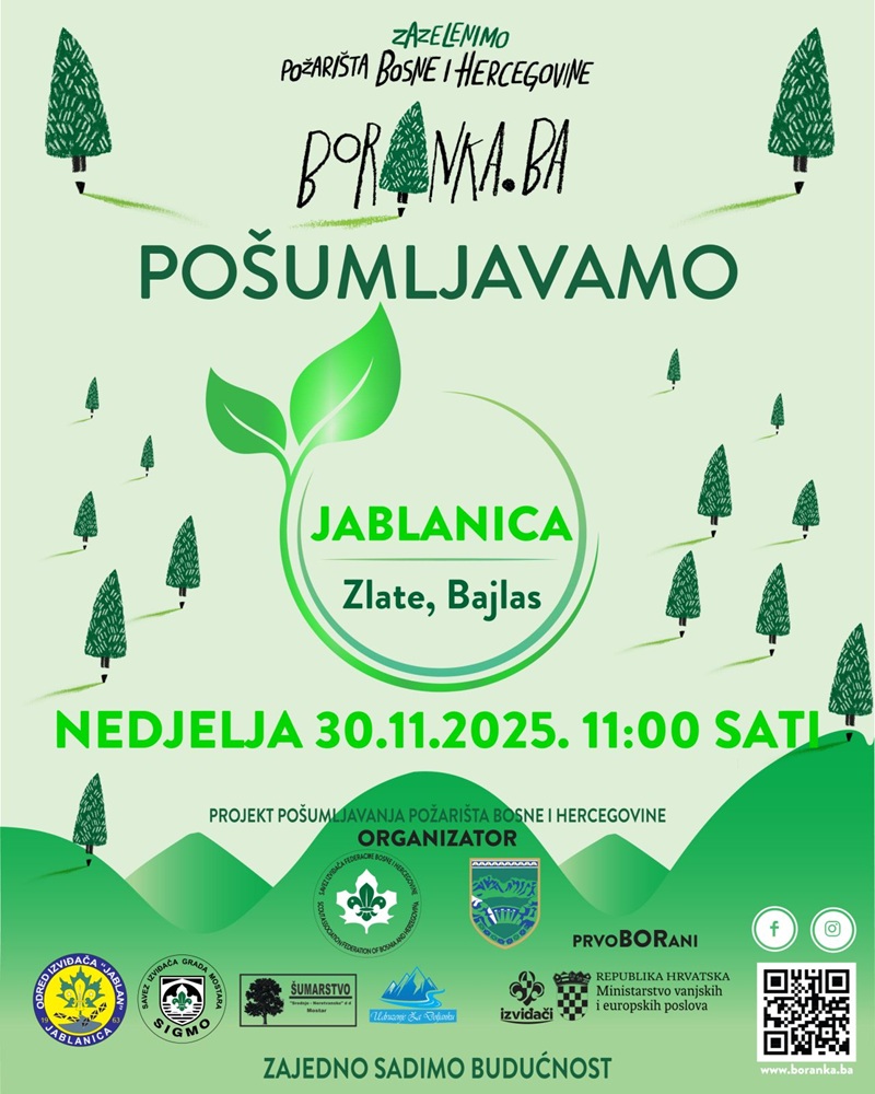 Nove akcije pošumljavanja bit će održane 29. 11. u Konjicu (lokacija Vrtaljica) te 30. 11. u Jablanici (lokacija Zlate, Bajlas). Na ove dvije lokacije planirano je posaditi ukupno 4 000 sadnica.