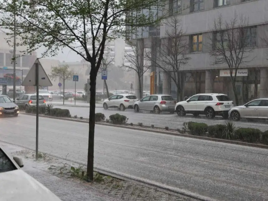 Uz kišu i vjetar, u kratkom vremenu krupa je zabijelila ulice grada na Neretvi.
