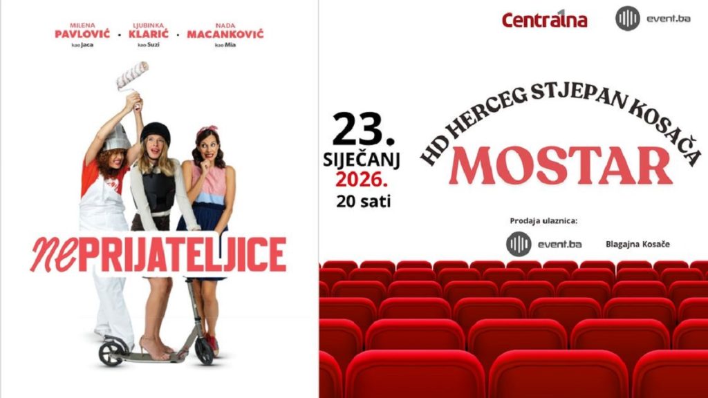 U domu herceg Stjepan Kosača u Mostaru u petak 23. 1. 2026. godine, u 20 sati bit će izvedena nova komedija „nePrijateljice“, predstava koja obara rekorde gledanosti širom regije.