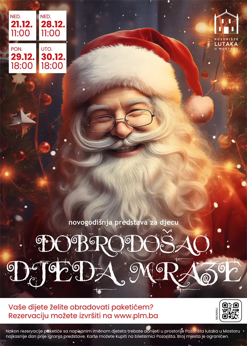 Kako je saopćeno iz Pozorišta lutaka Mostar, ova vesela lutkarska predstava vodi mališane u svijet mašte, prijateljstva i zajedništva, uz omiljenog Djeda Mraza i njegove nezaboravne prijatelje. Predstava je namijenjena djeci predškolskog i ranog školskog uzrasta, ali će u njoj uživati i odrasli.