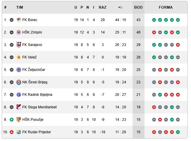 Raspored 20. kola WWin lige BiH: