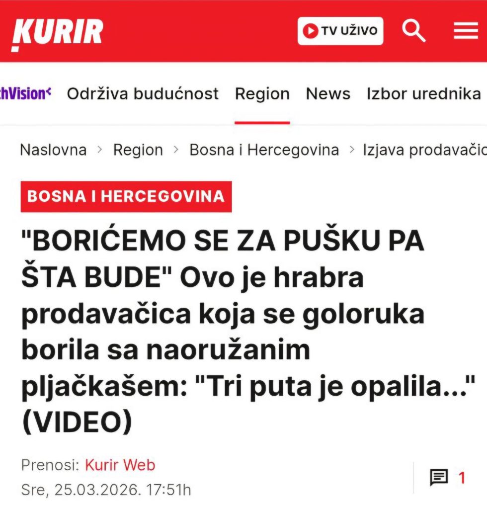 Ako ima onih koji ne znaju, iako u to sumnjamo, Fikreta je u utorak naveče goloruka savladala pljačkaša s automatskom puškom, koji je suočivši se sa nevjerovatnom snagom i upornošću ove žene, odustao od svog nauma.