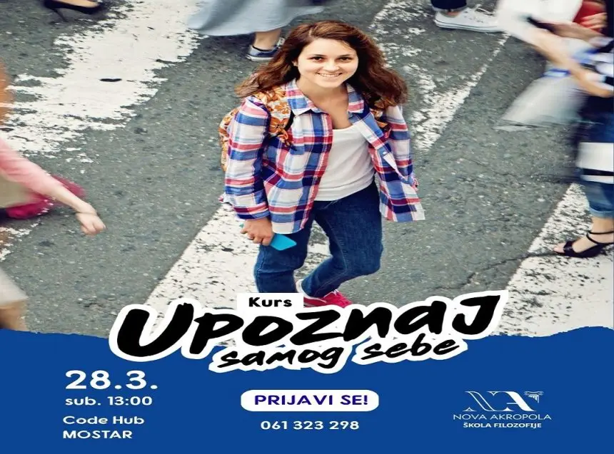 Prvo predavanje kursa praktične filozofije “Upoznaj samog sebe” bit će održano danas u 13 sati, u prostoru Code Hub Mostar, u organizaciji udruženja Nova Akropola.
