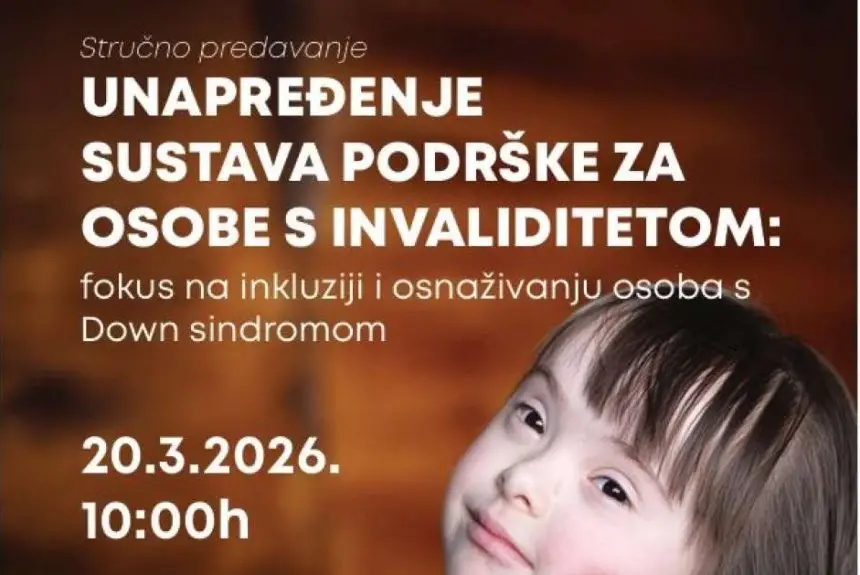 Stručno predavanje pod nazivom “Unaprjeđenje sistema podrške za osobe s invaliditetom: fokus na inkluziji i osnaživanju osoba s Down sindromom”, kojem je cilj jačanje inkluzivnog društva i unaprjeđenje sistema podrške osobama s invaliditetom, održat će se u petak, 20. marta, u Mostaru.