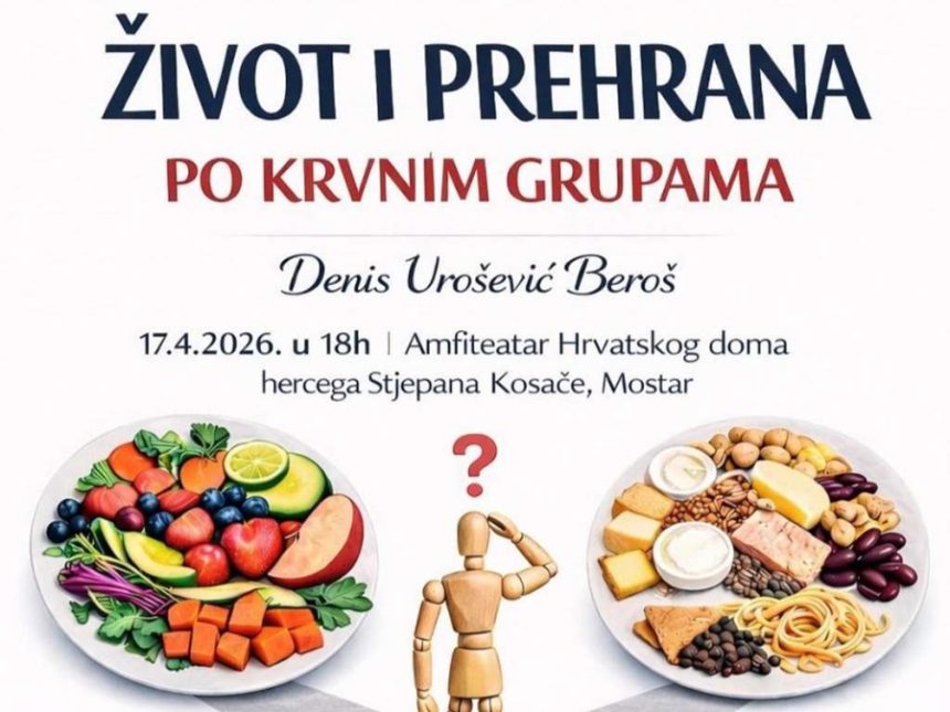 Predavanje pod nazivom „Život i prehrana po krvnim grupama” održat će se danas u 18 sati u domu herceg “Stjepan Kosača” u Mostaru.