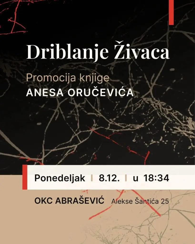 Promocija knjige “Driblanje živaca” mostarskog pjesnika Anesa Oručevića, bit će upriličeno večeras u 18:34 sati u OKC Abrašević.