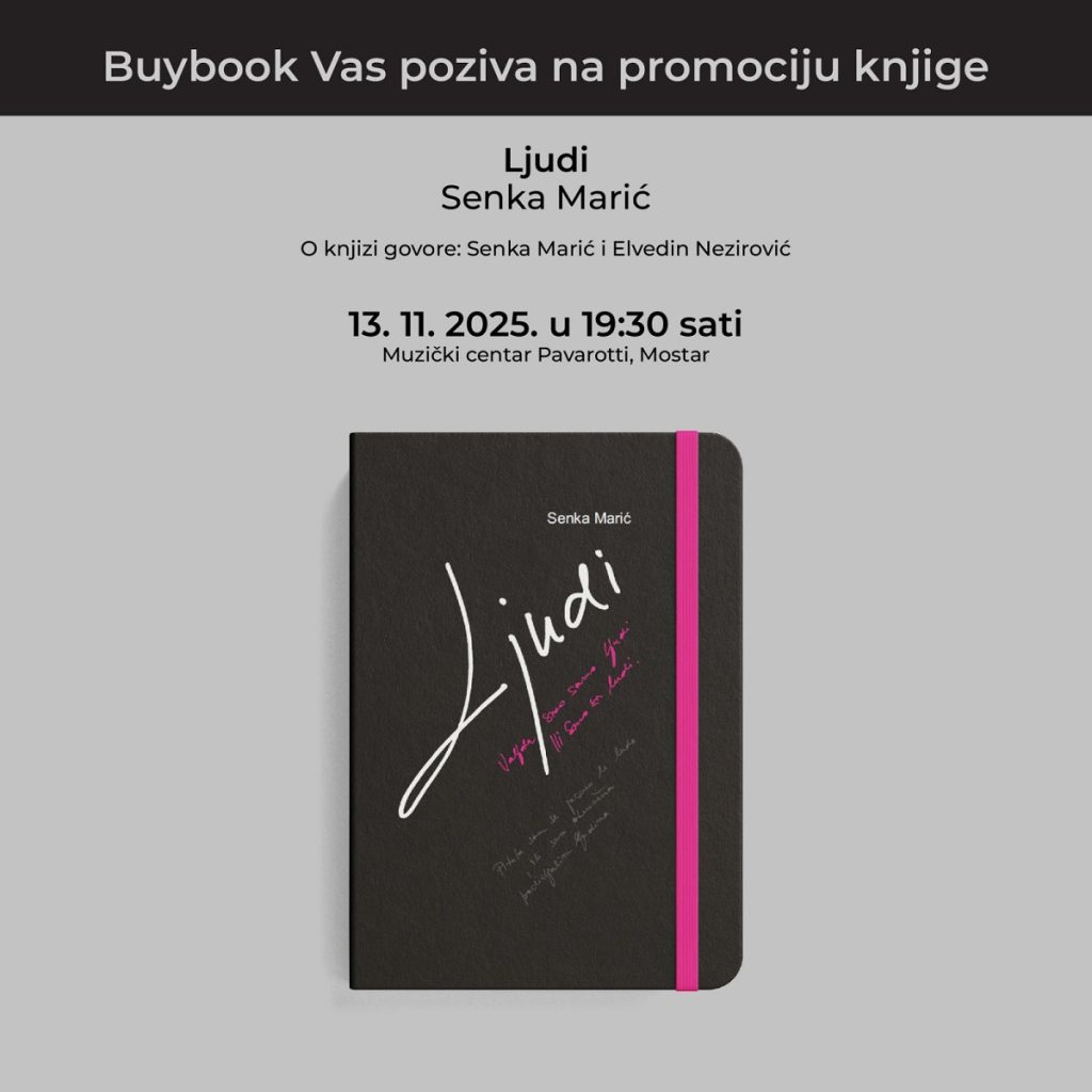 Promocija knjige “Ljudi” autorice Senke Marić, u organizaciji Muzičkog centra Pavarotti i Izdavačke kuće “Buybook” iz Sarajeva, bit će upriličena u četvrtak 13. 11. 2025. godine u 19:30 sati u prostorijama MC Pavarotti.