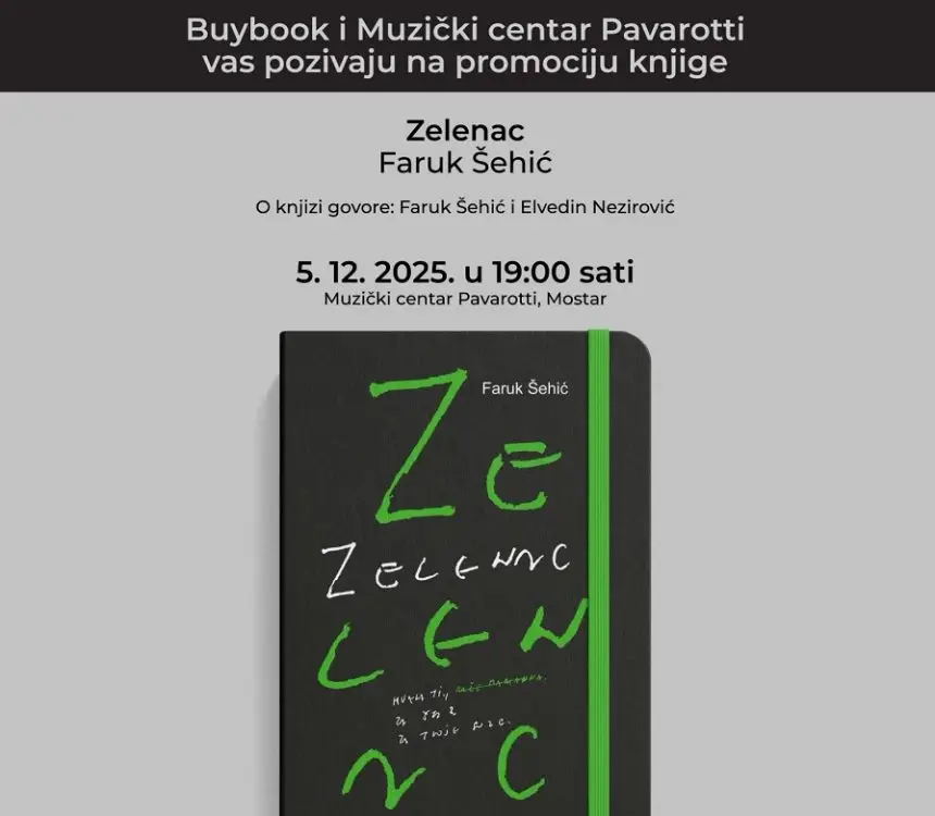 U sklopu ovogodišnjeg izdanja Mix Art Festa, kojeg organizuje Muzički centar Pavarotti, bosanskohercegovački pjesnik, publicist i pisac, Faruk Šehić, promovirat će svoju novu knjigu – dnevnik „Zelenac“.