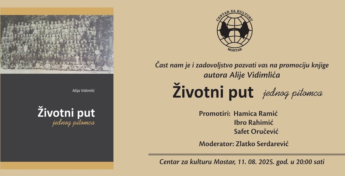 Promocija knjige “Životni put jednog pitomca” autora Alije Vidimlića bit će upriličena večeras u 20.00 sati u Centru za kulturu Mostar.