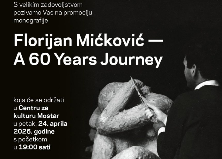 U Centru za kulturu Mostar, u petak, 24. aprila 2026. godine s početkom u 19 sati, bit će upriličena promocija monografije Florijan Mićković – A 60 Years Journey, posvećene jednom od najistaknutijih mostarskih i bosanskohercegovačkih kipara i umjetnika.
