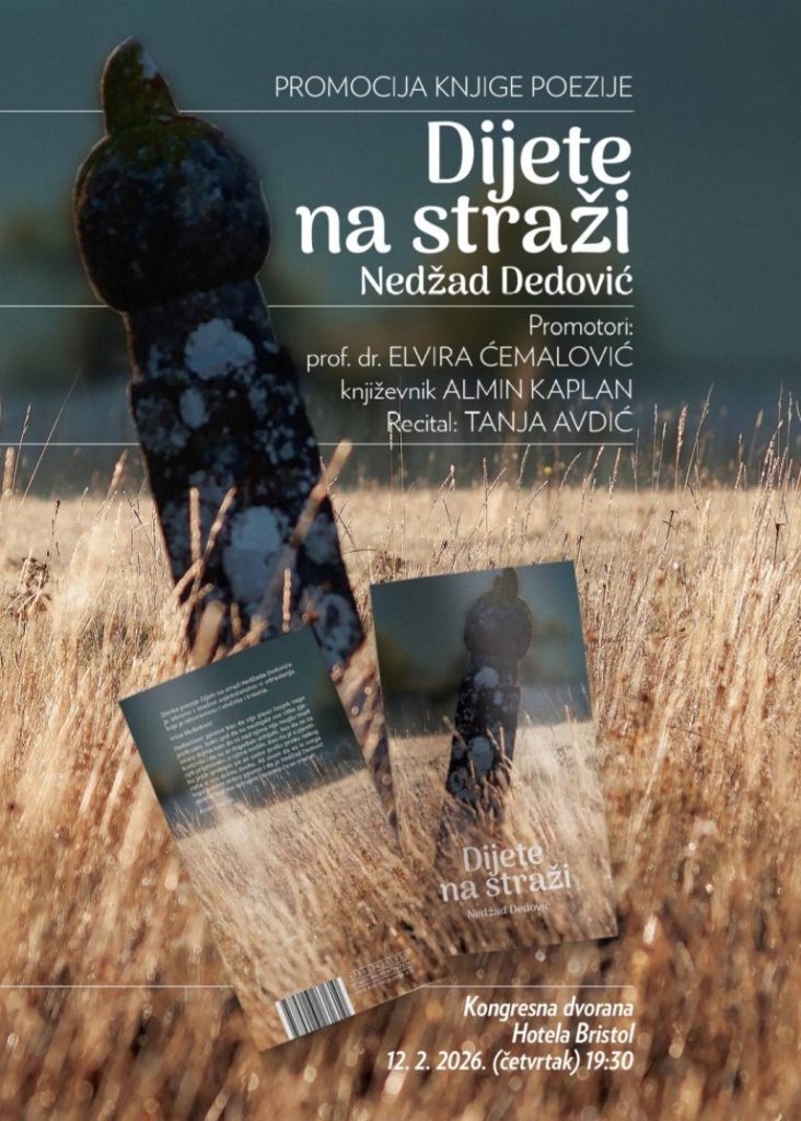 Promocija zbirke poezije “Dijete na straži” autora Nedžada Dedovića, bit će upriličena u četvrtak 12. 2. 2026. godine u 19:30 sati u Kongresnoj dvorani Hotela Bristol.