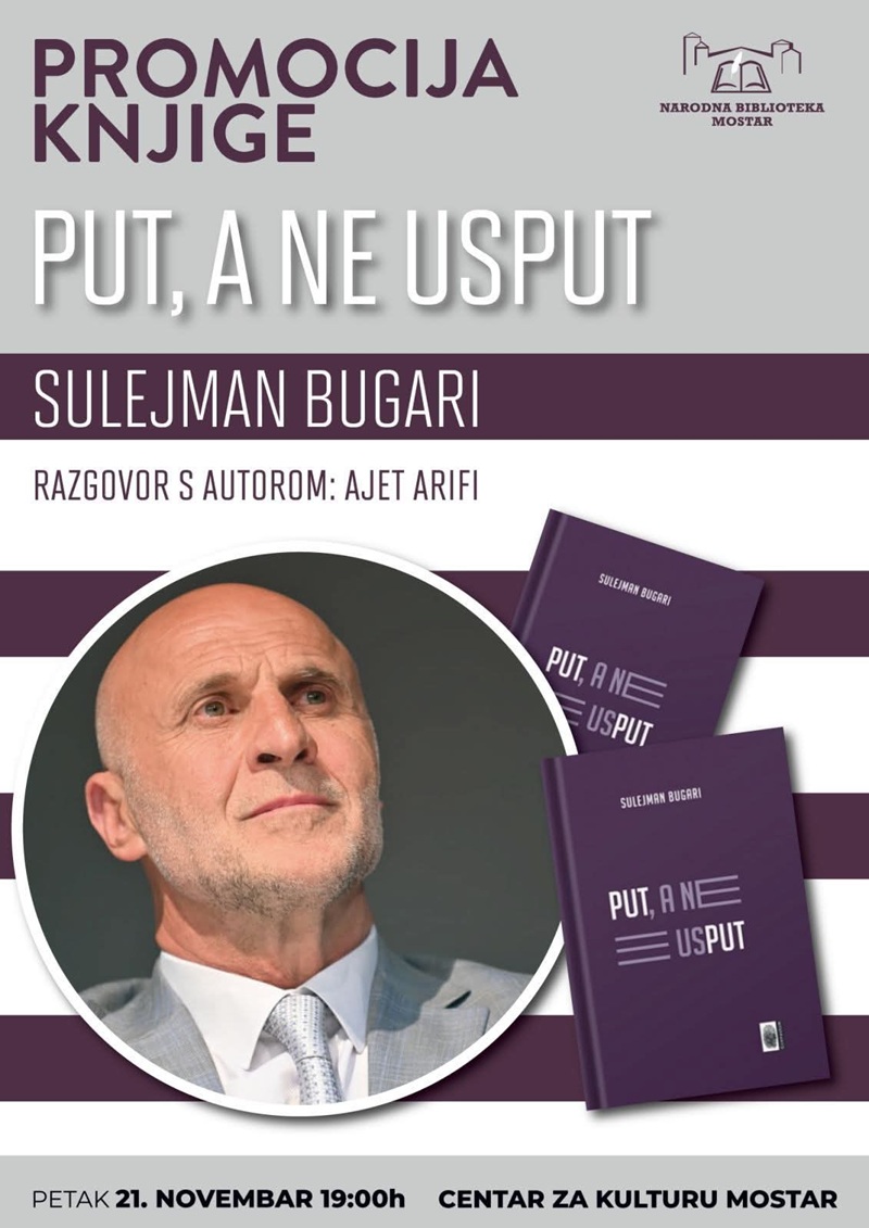 Promocija knjige “Put, a ne usput” autora hafiza Sulejmana Bugarija bit će upriličena u petak, 21. 11. 2025. godine u 19.00 sati u mostarskom Centru za kulturu u organizaciji Narodne biblioteke Mostar.