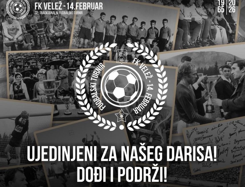 Pod snažnom porukom „Budimo ujedinjeni za našeg Darisa“, Fudbalski klub (FK) Velež Mostar ove subote na pomoćnom terenu stadiona Rođeni organizuje tradicionalni Februarski turnir, događaj koji već godinama okuplja prijatelje Kluba, navijače i zaljubljenike u fudbal.
